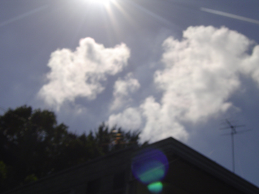 行って来ました!デジカメを持って・・・私の自宅から神社までは歩いて、10分程度ですが、あまり歩かない道で、この暑いさなか、いろんな物を発見しました。線路沿いを歩くのですが、線路沿いは普段歩かないですが、綺麗なお花が咲いていたり、こんな時に限って、綺麗な雲が浮かんでいたりして。お祭りは久しぶりですが、最近のお祭りの出店で、今日行って驚いたのは、韓国チジミが売っているんですね。