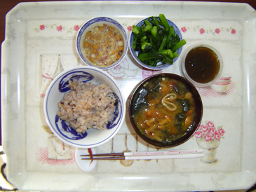 終わり!納豆に、なぜ、ねぎじゃなくて、玉ねぎ?と思われると思いますが、血液さらさら効果が増すんですって!(お昼のおじさんが言っていましたが)私は、最初っから、全く抵抗なく、むしろ、はまってます!最近のレトルトお味噌汁もわりと美味しく、日本酒でまろやかになります。おひたしですが、ほうれんそうでも良いですが、私は、つゆむらさきが大好きで、美味しいです!美味しい、カップ