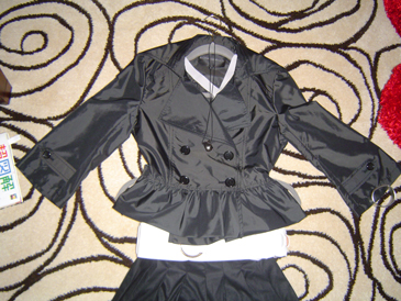 最近は、ミニスカートが流行ってますが、今年の冬は黒が流行るそうです。この、コーデネイトは、着てみると、わりと、しっくりいくもんで、白のベルトが、かなりのポイントです。インナーも実は、後ろが、バッテンになっていて、素材もお色もいいんです。一見ビニール素材が、個性感を出し、本当は素足で履いてほしい、お洋服です。ジャケットを脱いでも、インナーが素敵なので、大丈夫です。