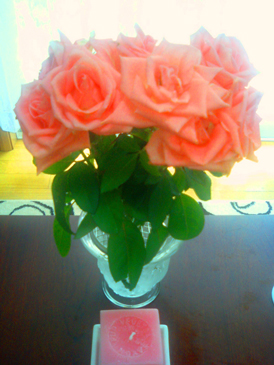この、ばらの花・・・200円でした!!!しかも、前においてあるのは、たまたま、ばらの、アロマキャンドルです。この時期、生け花は、すぐだめになってしまうのですが、最近はすぐれものの生け花が、長くもつ液体がありまして!一週間は、軽くもちます!ばらの、ちょうど良い淡いピンクが、かわいいです!私の家の近所は何故か、お花が安いのは、うれしいです!なので、いつも、チェックしてしまいます。冬場は、かなり長持ちするのですが・・・しかし、安いですから。花瓶も生けやすく網がついているんです。お気に入りです!